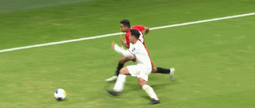 第45+2分钟,双方互有动作,卡西姆推倒对手吃到黄牌。