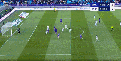 第90分钟,扳回一城,萨尔瓦多助攻基莱斯垫射破门,天津津门虎1-2。